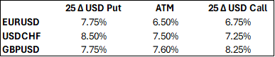 These option volatilities are still cheap by historical standards and investors should consider using longer-term option strategies to protect against large jumps in exchange rates in the coming months.
